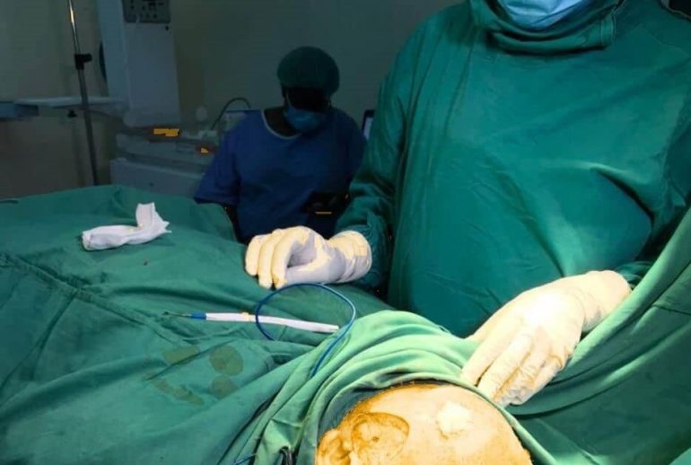 Albicare then scheduled Cyrille’s surgery for a week after his first visit to the hospital. Bola Antoine, a maxillofacial surgeon, led the operation, supported by Abanda Gabriel, a general practitioner, and Albicare’s coordinator, Wilfred. Cyrille had a successful surgery; his tumours were removed, and he returned to Bertoua.